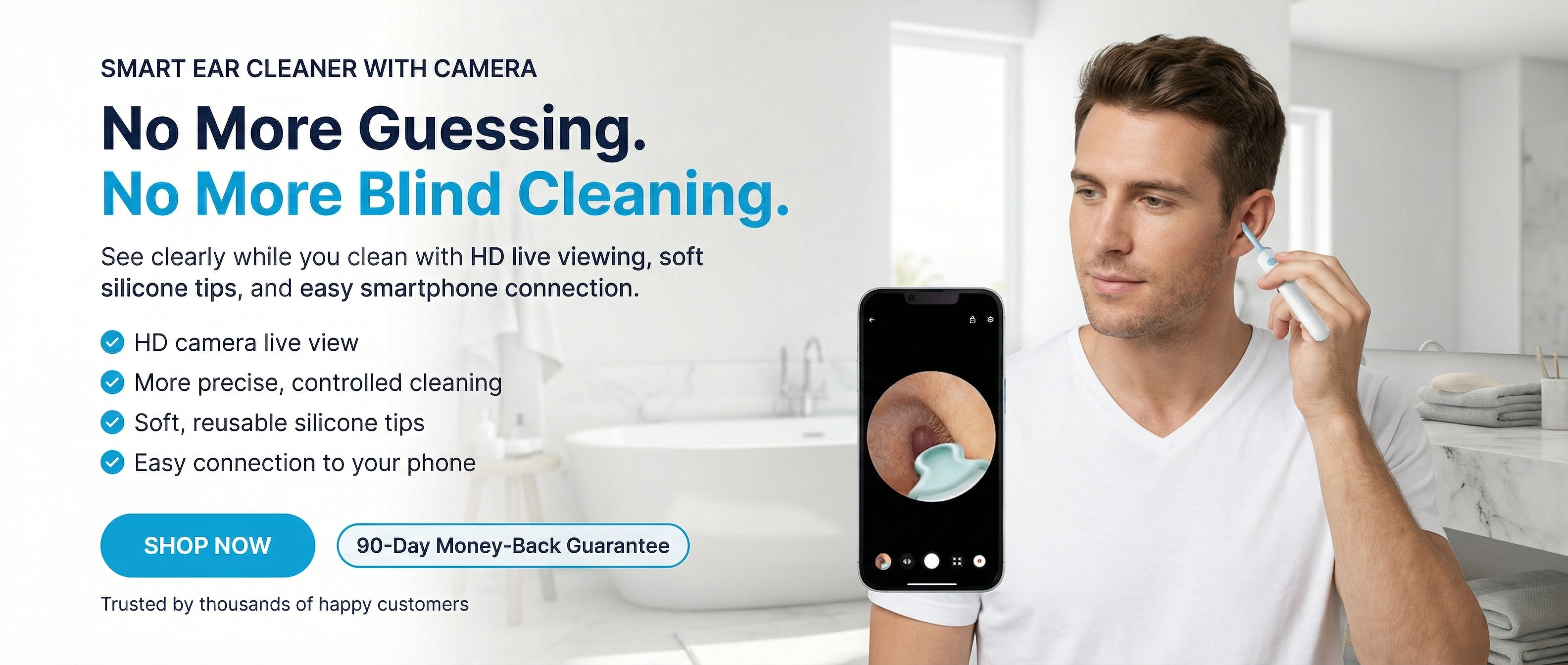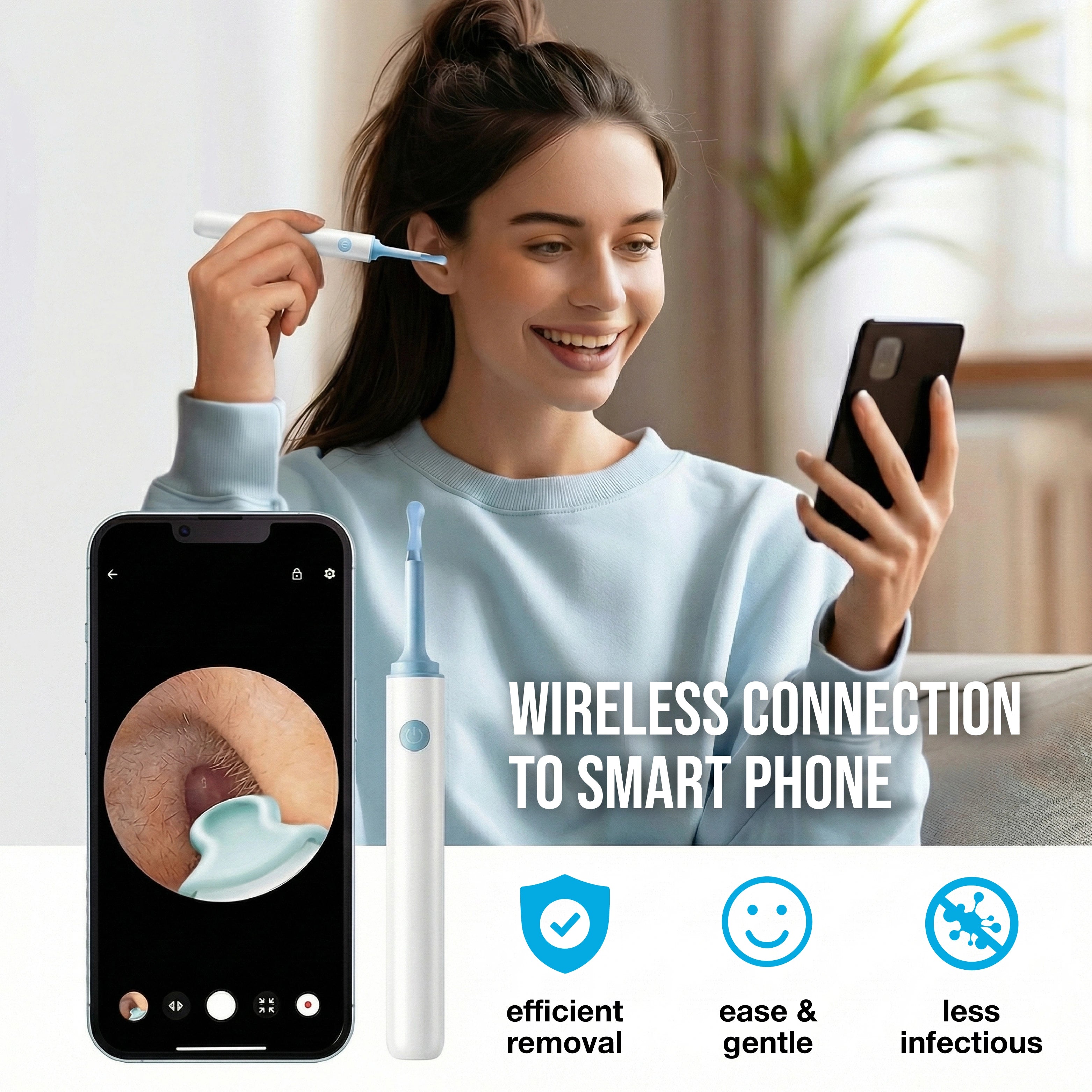 Visible ear cleaning with HD camera guidance, soft silicone tips, and easy smartphone connection.